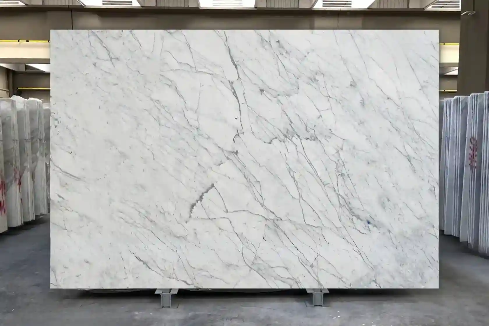 Bianco Venato có màu trắng sáng chủ đạo, thường kèm theo các vân màu xám, xanh hoặc đen tạo nên một mẫu vân phức tạp và đẹp mắt. Mẫu vân thường không đều và không giống nhau giữa các tấm đá, tạo ra một sự độc đáo và tự nhiên cho mỗi bức tranh trên bề mặt đá. Loại đá này thường được sử dụng trong trang trí nội thất, bao gồm sàn nhà, bức tường, mặt bàn và lavabo,…